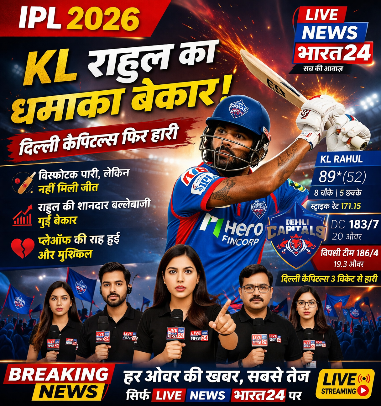KL Rahul की विस्फोटक पारी बेकार, Delhi Capitals को हार का सामना